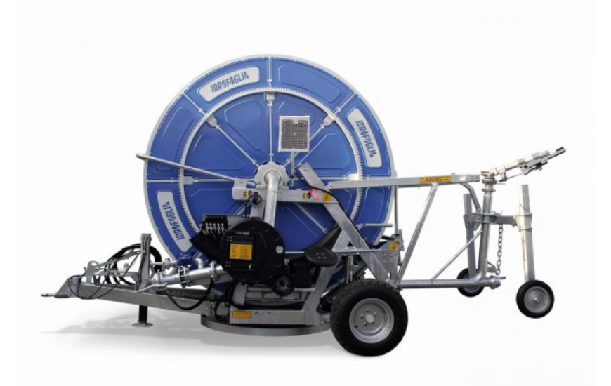 Carter v prašno lakirano pločevino za večjo obstojnost. Turbo reduktor z najboljšimi zmogljivostmi v svoji kategoriji.Dvojni dovod vode (stran turbine in nasprotna stran). Jekleni vhodni nosilci z bronasto in najlonsko pušo, ki ne potrebuje vzdrževanja. Dovodno tesnilo iz litega železa z LOM in OR.Valjček za cev s kaledriranim jedrom iz pločevine (ne poškoduje PE cevi, podaljša njegovo življenjsko dobo), notranji žbice, ki omogočajo uporabo stroja v ekstremnih pogojih. Kolesa v sredini stroja, da se obremenitev na traktorju manj obremeni. Nosilci s teleskopskimi palicami za sidranje in dvigovanje vozička.